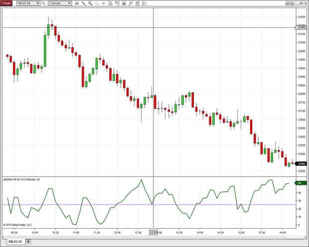 Low DMI values indicate a non-trending market whereas high values tells us the opposite, a trending market on strong momentum. The DMI is a preliminary stage to calculating the ADX, which is created by exponentially smoothing the DMI.